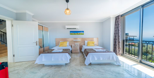 3. Yatak Odası : Çift kişilik yatak, klima, makyaj masası, komodin, elbise dolabı, banyo ve tuvalet bulunmaktadır.