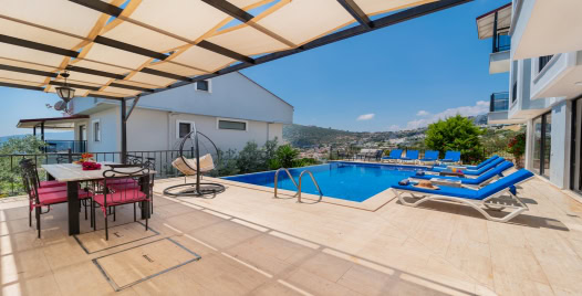 Havuz ve Bahçe : Villa havuz terasında özel yüzme havuzu, şemsiye, şezlong, barbekü, oturma grubu bulunmaktadır.