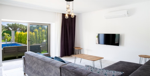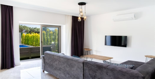 Salon : Salon içerisinde oturma grubu, TV, klima, sehpa, bulunmaktadır.