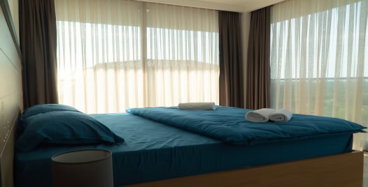 1. Yatak Odası: 1 adet çift kişilik yatak, elbise dolabı, makyaj masası, klima ve banyo-tuvalet yer almaktadır.
