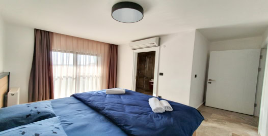 3. Yatak Odası: 1 adet çift kişilik yatak, elbise dolabı, banyo, tuvalet ve klima yer almaktadır.