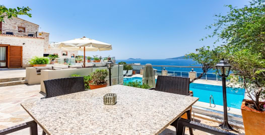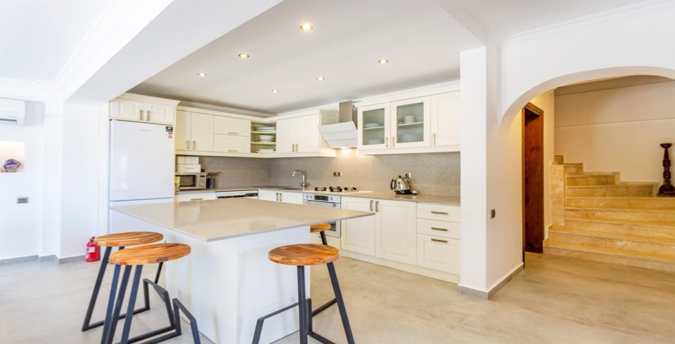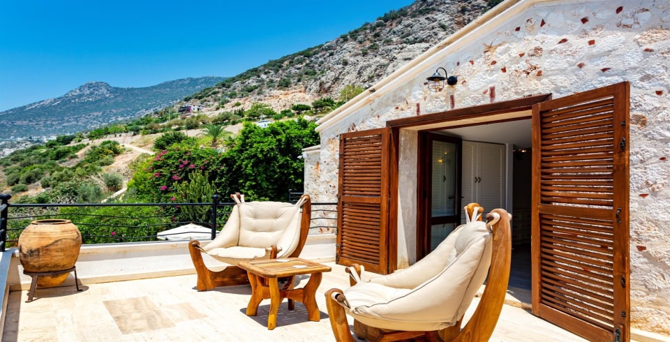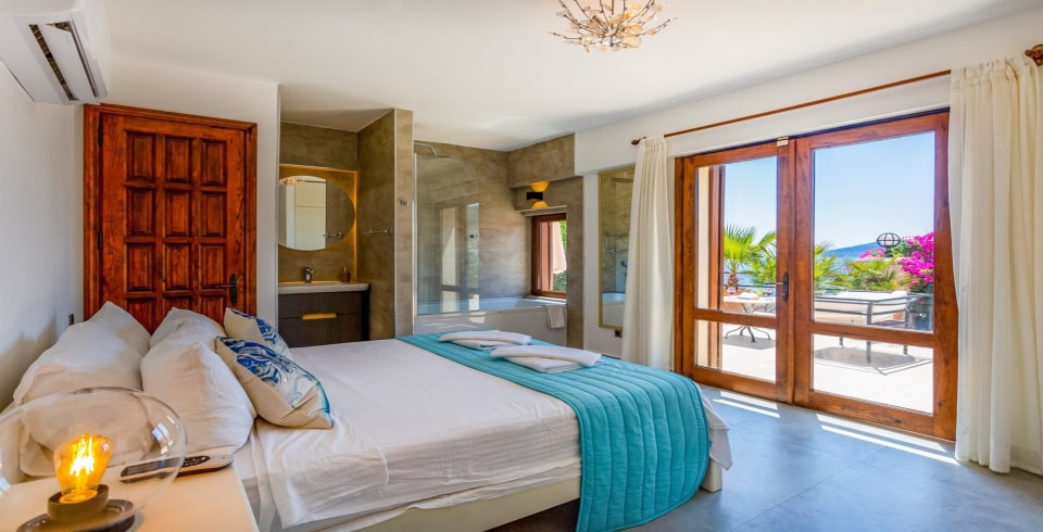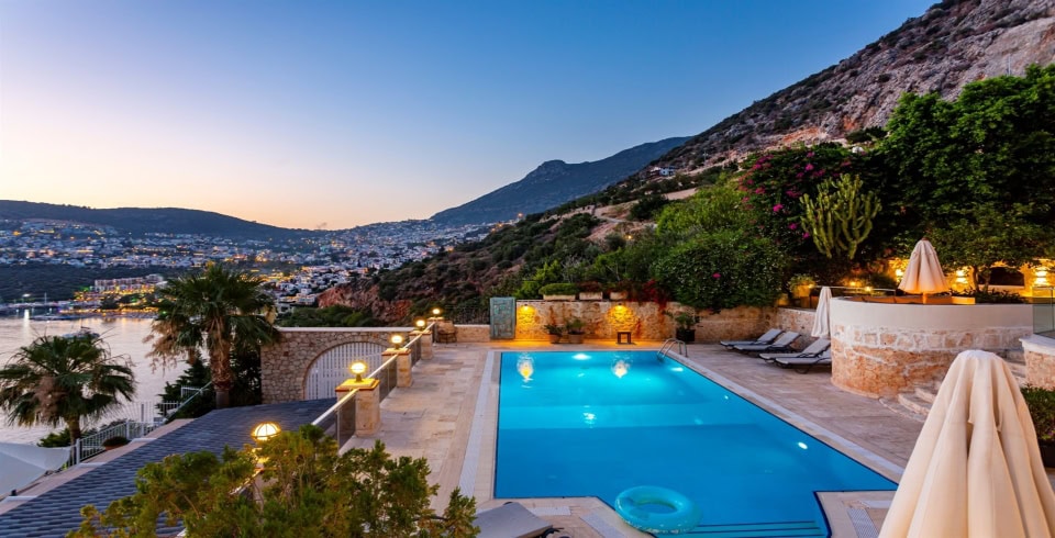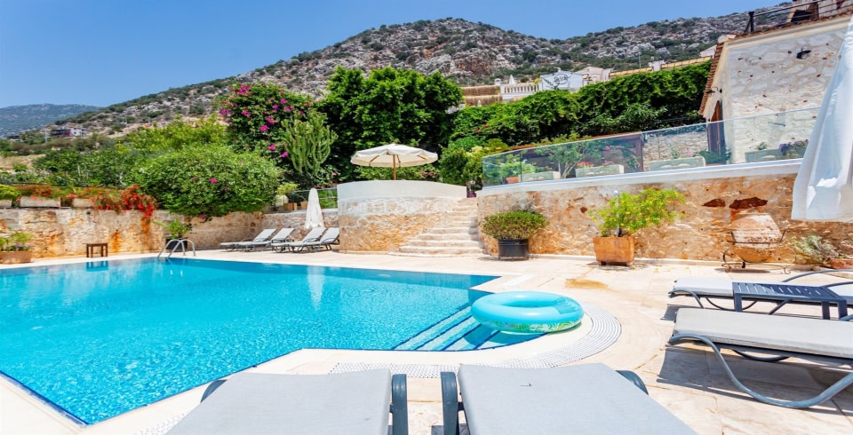 Konumu ve mimarisi itibariyle havuzu korunaklı olan villamız lüks ve unutulmaz bir tatil için misafirlerimizi beklemektedir. Kalkan’ın en güzel deniz manzarasına sahip olan müstakil villalarımızdandır. Her odasının kendine ait balkonundan eşsiz kalkan manzarasını ve akdenizin masmavi sularını görmek mümkündür. 4 adet süit deniz ve doğa manzarasına sahip olan villamız da ayrıca 1 amerikan mutfak ve salon bulunmaktadır.