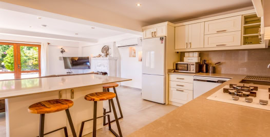 Mutfak : Lüks amerikan mutfağımızda buz dolabı, bulaşık makinesi, çamaşır makinesi, fırın, 4 ’lü ocak (ankastre), elektrikli su ısıtıcı, tost makinesi, 7 kişilik yemek takımı, tava, tencereler, çatal, bıçak vb. gereçler bulunmaktadır.