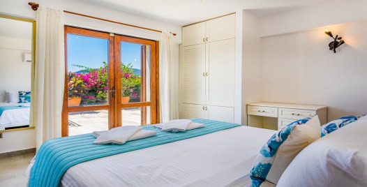 3. Yatak Odası : Çift kişilik yatak, komodin, klima, makyaj masası, balkon, banyo ve tuvalet bulunmaktadır. Deniz manzaralıdır.