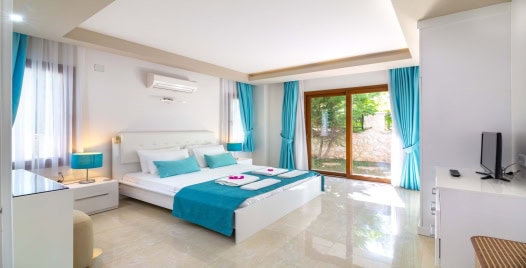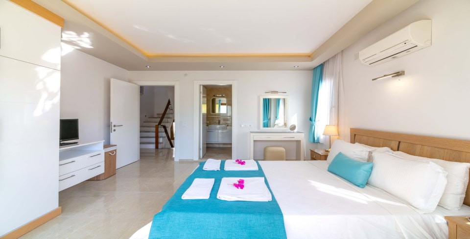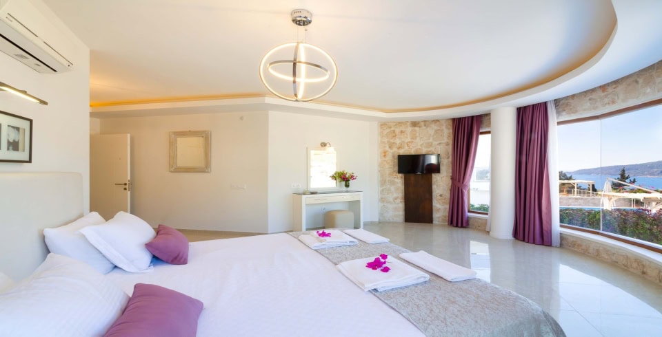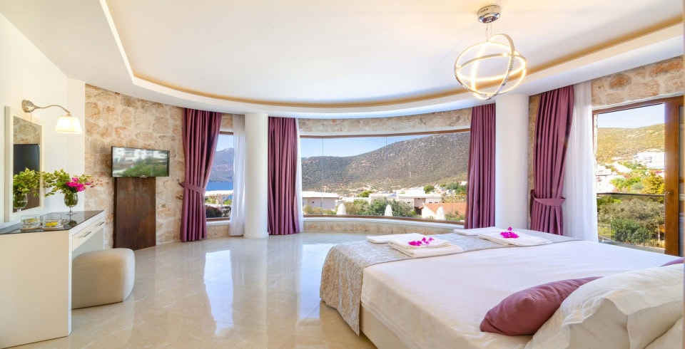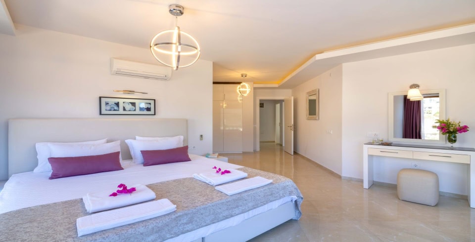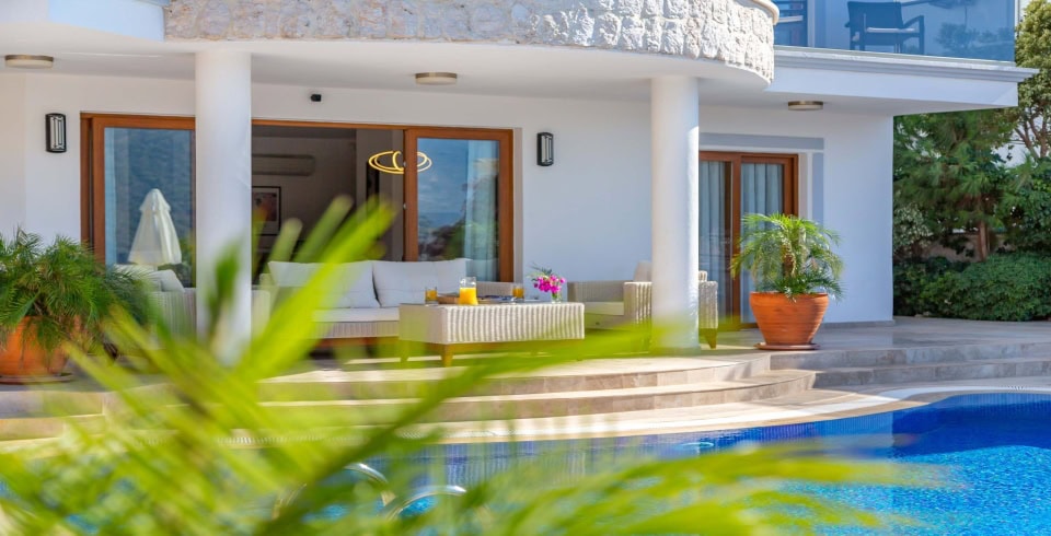Kalkan Kalamar Bölgesinde bulunan deniz manzaralı 5 yatak odası ile 10 kişiye kadar konaklayabilirsiniz. Kalabalık aile ve arkadaş grupları için oldukça ideal bir villadır. Villamızın geniş bahçesinde havuz, şezlong, güneş şemsiyeleri, oturma köşesi, yemek masası yer almaktadır. Denize ve merkeze yakın konumda villa kiralamak isteyen misafirlerimizler sayfamızdan erken rezervasyon fırsatı ile kiralayabilirsiniz.