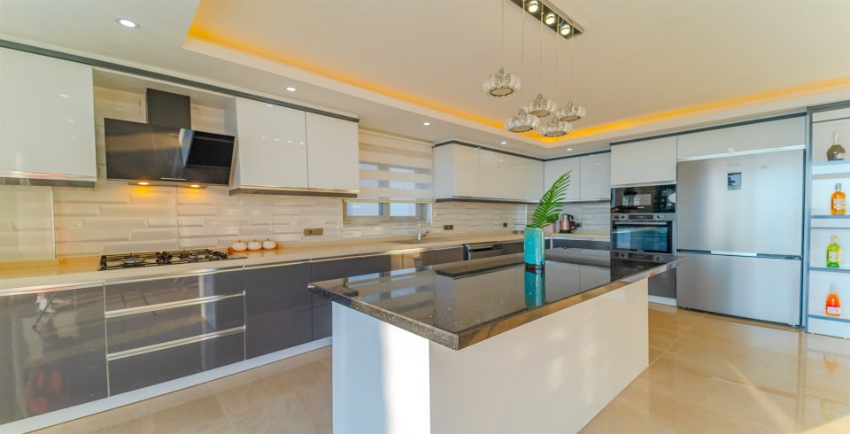 Mutfak : Amerikan Mutfak (Zemin Katta), Buzdolabı, Bulaşık Makinesi, Ankastre Ocak ve Fırın, 8 kişilik yemek takımı ve çeşitli mutfak araç gereçleri..