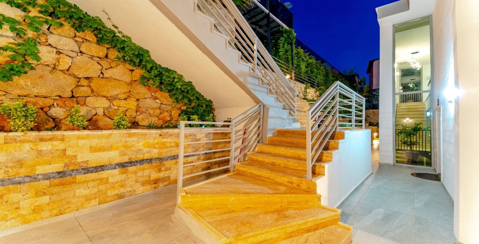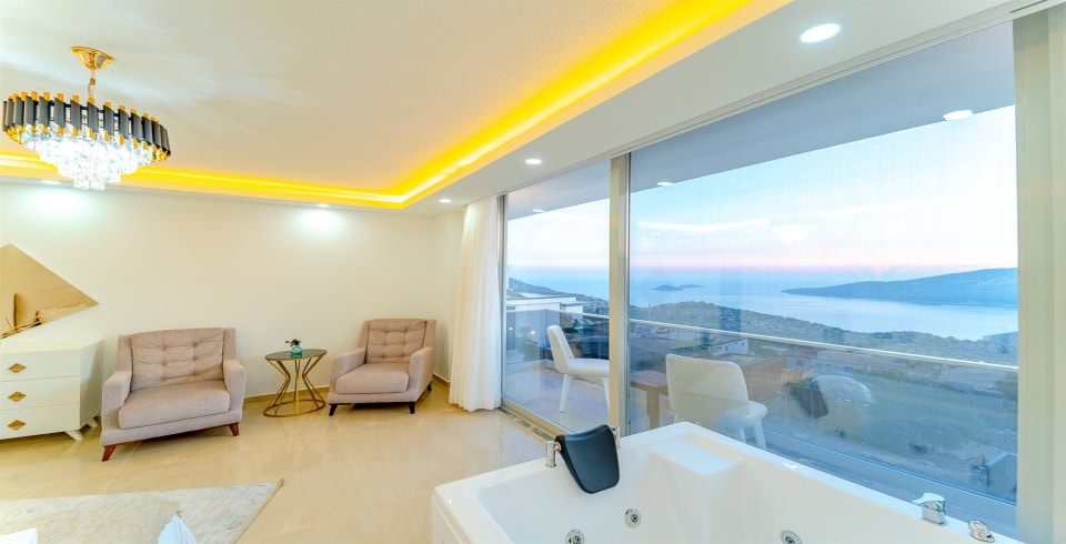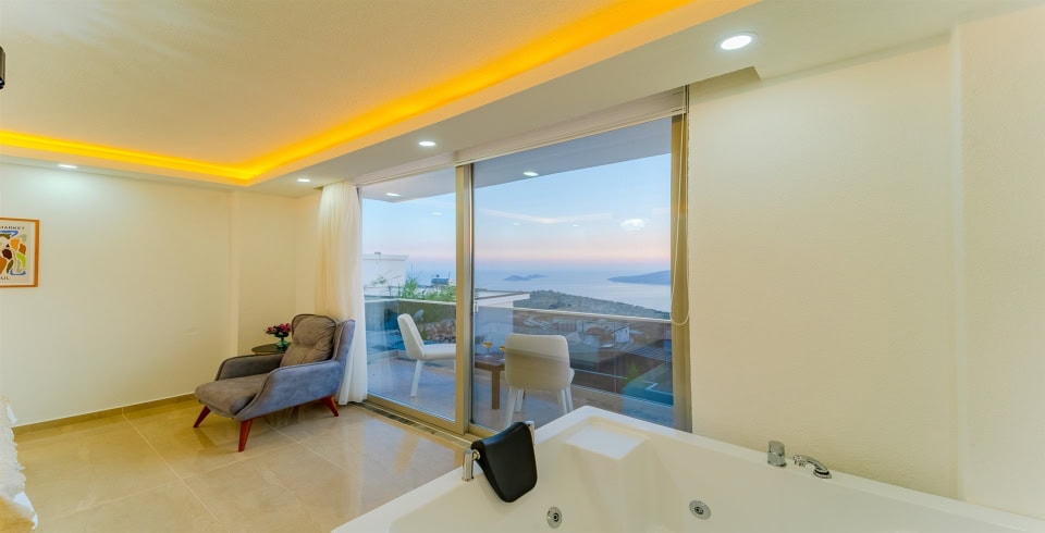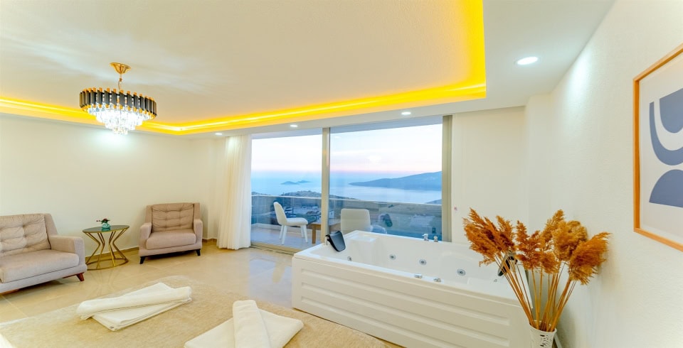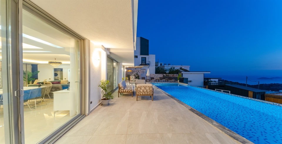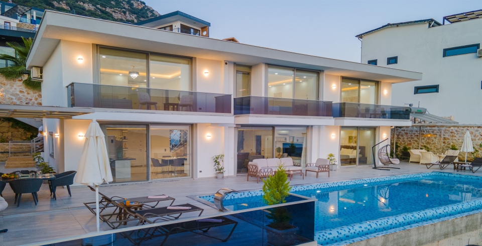 Kalkan Kördere bölgesinde bulunan 4 yatak odalı 8 kişilik özel yüzme havuzlu kiralık yazlık tatil villamızdır. Villamız deniz ve doğa manzarasına sahip olup denize ve kalkan merkeze oldukça yakın bir konumda bulunmaktadır. Villamız oldukça lüks ve konforlu bir villadır. Villamızda tüm yatak odalarında jakuzi, TV banyo ve lavabo bulunmaktadır. Villamızın Havuz terasında tatil boyunca zaman geçirebilmek için masa tenisi ve langırt bulunmaktadır.