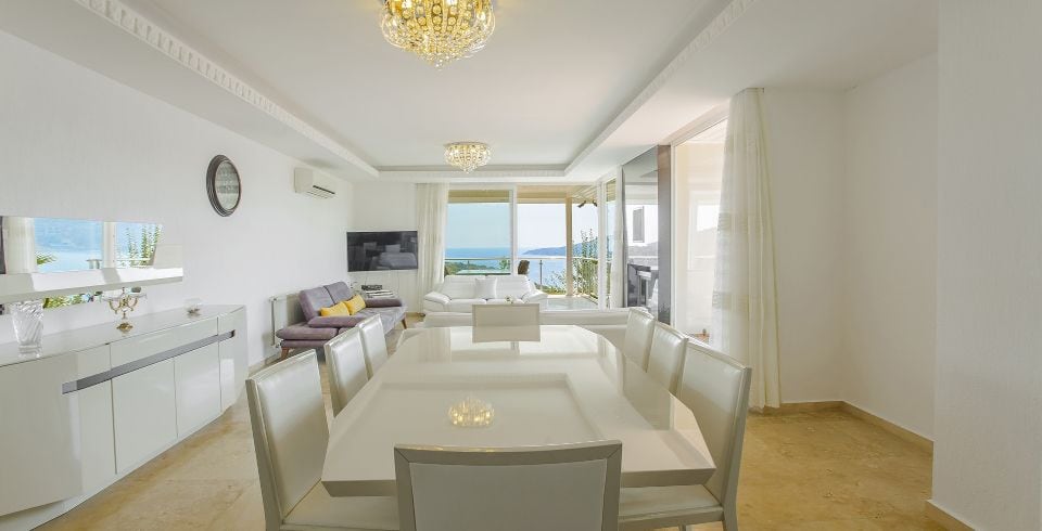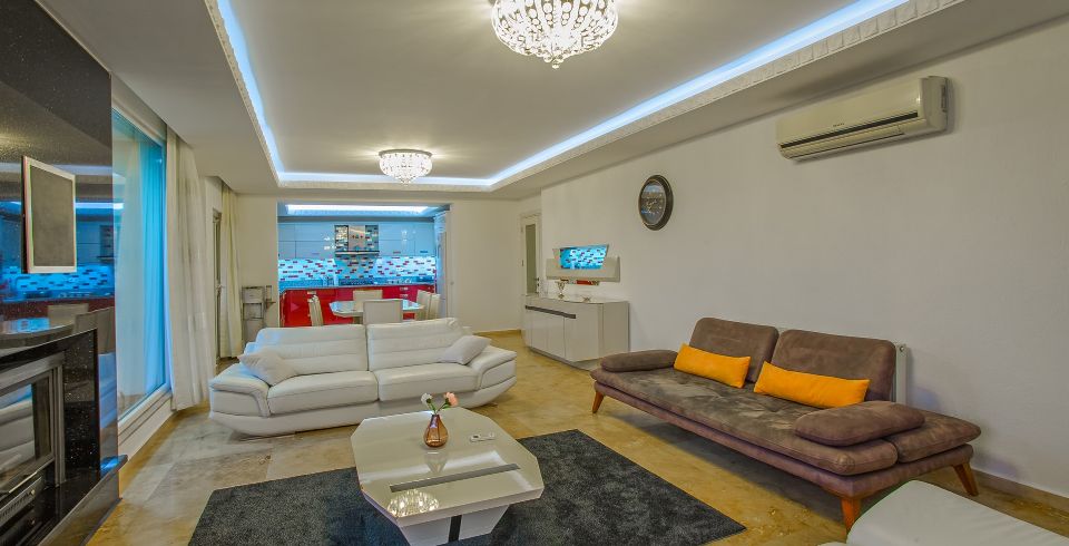 Salon : Villa Just un salonunda sizi şık bir oturma grubu ile klima, televizyon, internet, uydu, koltuk, sehpa ile ferah bir salon bekliyor olacaktır. Havuz terasına çıkış yapılmaktadır.