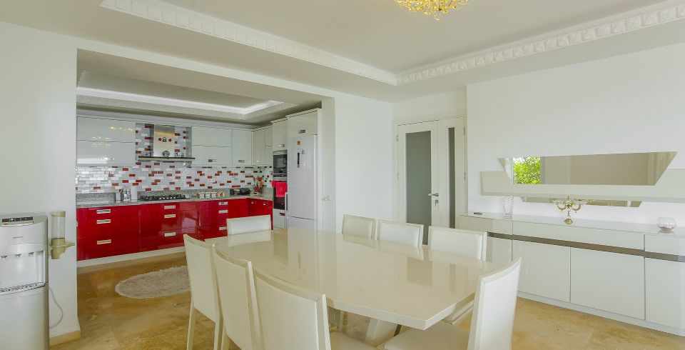 Mutfak : Villamızın geniş Amerikan mutfağı ile sizlere kendi evinizin mutfağı gibi hissettirecek. Ayrıca mutfakta klima, bulaşık makinası, buzdolabı, çamaşır makinası, mikrodalga fırın, tost makinası, ekmek kızartma, su ısıtıcısı, fırın, 4`lü ocak seti ve yemek masası ile tava tencere vb. mutfak araç gereçlerini kullanma fırsatını sizlere sunuyoruz.