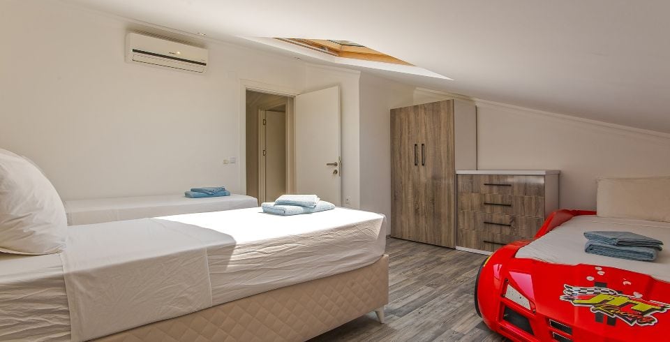 3. Yatak Odası : 1 adet çift kişilik yatak, klima, komodin, elbise dolabı, makyaj masası, banyo ve lavabo bulunmaktadır.