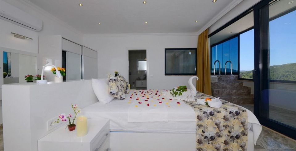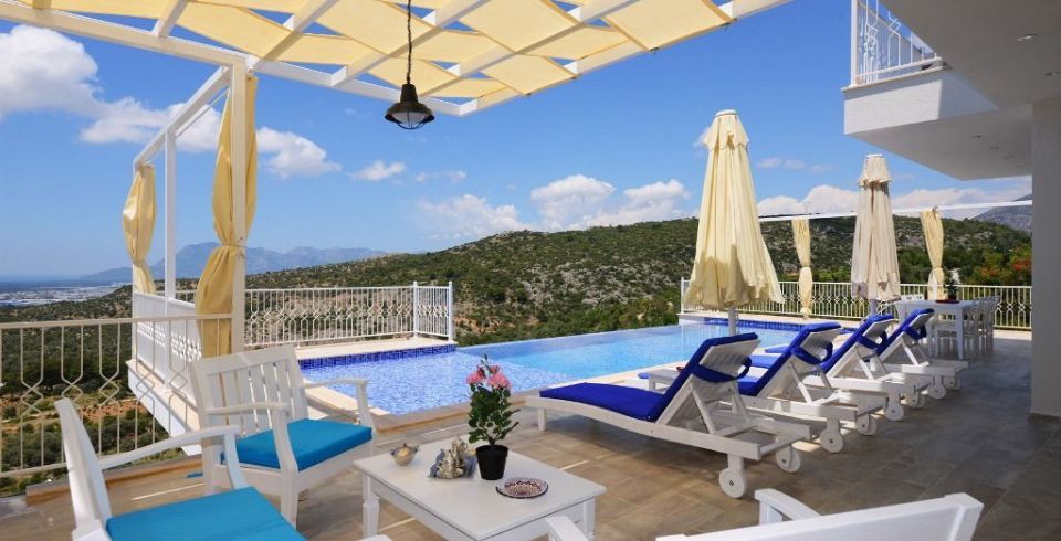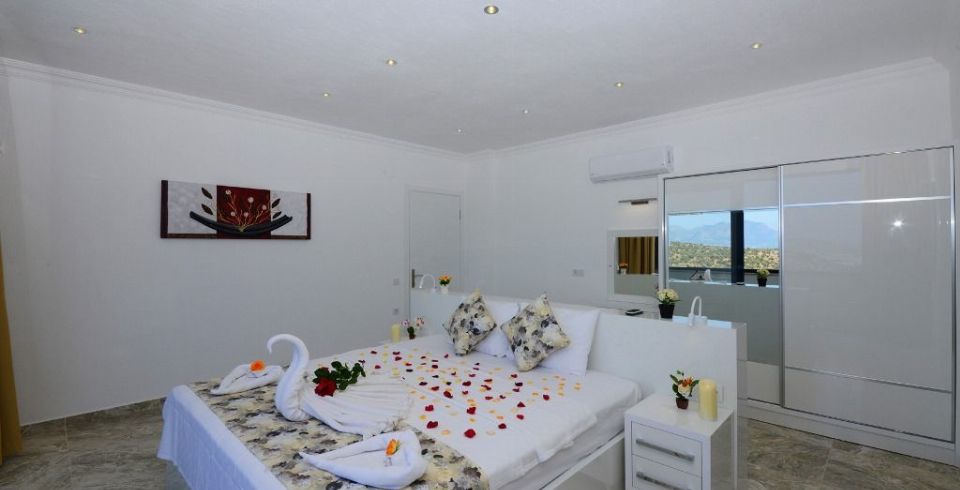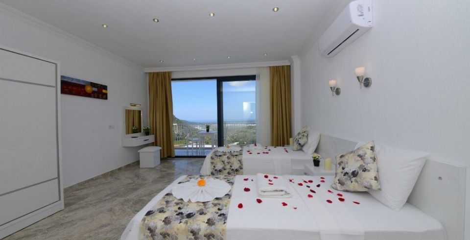 Kalkan’ın Üzümlü mevkiinde yer alan, yaz aylarının vazgeçilmezi olmaya hazır muhafazakar, kiralık nefis mi nefis muhteşem deniz manzaralı korunaklı dubleks villamız ebeveyn banyolu, 2 adet süit yatak odalı 4 kişi konaklama kapasitesine sahiptir. Villalarımızı tesettürlü ve muhafazakar ailelerin tekrar tekrar tatil mekanı olarak Akdeniz Villalarını tercih etmelerinden müşteri memnuniyetini anlayabilirsiniz. Dış kısmı muhafazakar olan villamızın sonsuz havuz ve havuz terası korunaklı olup, dışarıdan görünmemektedir. Dünyaca ünlü Patara sahiline ve zeytin ağaçlarının huzur veren doğa manzarasına sahip olan Villa Kaan konumu gereği Kalkan merkeze 7 km uzaklıktadır. Araç ile merkeze 10 – 15 dakika mesafe uzaklığındadır. Sonsuz havuzlu, çardağı bulunan, korunaklı olmasından rahat hareket edebileceğiniz geniş bahçeli villamız hem balayı çiftlerimize hem de çekirdek ailelerimize uygun olarak tasarlanmıştır.
