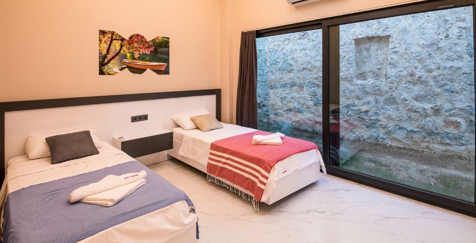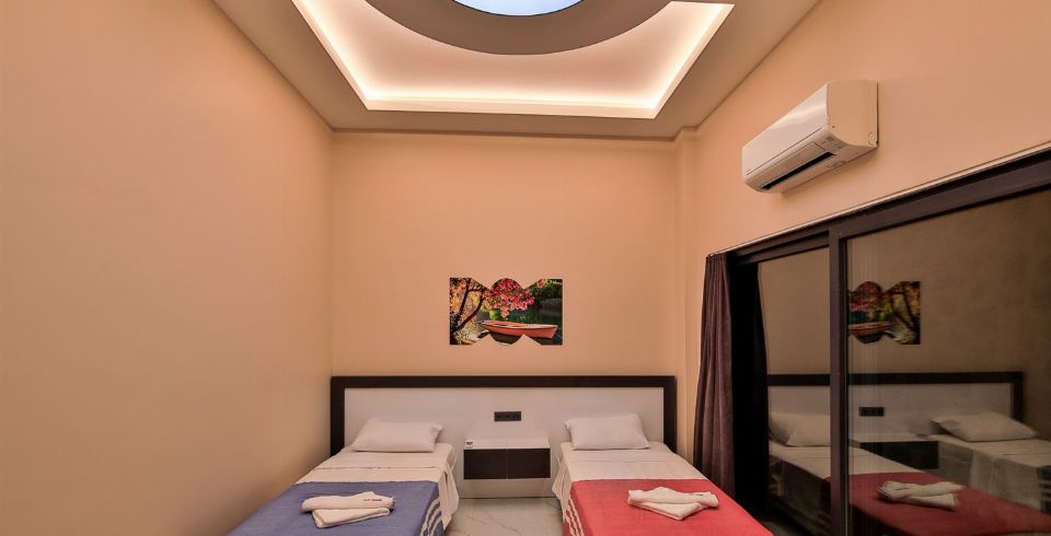 2. Yatak Odası : 2 adet tek kişilik yatak, komodin, masa ve sandalye, makyaj masası, elbise dolabı, klima, banyo ve lavabo bulunmaktadır.