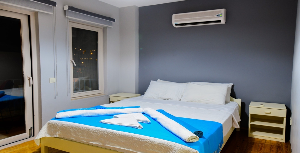 1. Yatak Odası: 1 adet çift kişilik yatak, elbise dolabı, klima, balkon, tuvalet ve banyo yer almaktadır.