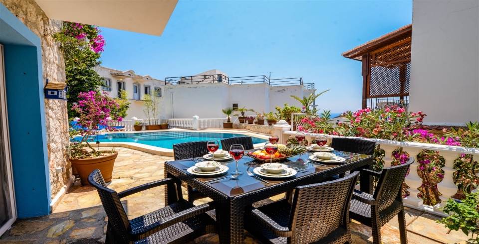 Villa Kalkan Blue, Kalkan merkezde yer alan 8 kişi kapasiteli ve deniz manzarasına sahip bir tatil villasıdır. Havuz keyfi ile beraber denizi seyredebilir ve tatilin tadını çıkarabilirsiniz. Geniş aileler ve arkadaş grupları için uygun olan bu villa, eşsiz manzarası ve rahat yaşam alanları ile konforlu ve huzurlu bir tatil vaat ediyor. Villamızın teras katında muhteşem bir deniz manzarası sizleri bekliyor bu güzel manzara eşliğinde akşamları terasta yer alan barbekü de nefis mangallar yaparak tatilinizin tadını çıkartabilirsiniz.