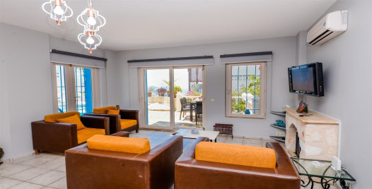 Salon: 1 adet oturma grubu, yemek masası, LCD TV, uydu alıcı, salondan havuza çıkış ve ortak kullanım tuvalet bulunmaktadır.