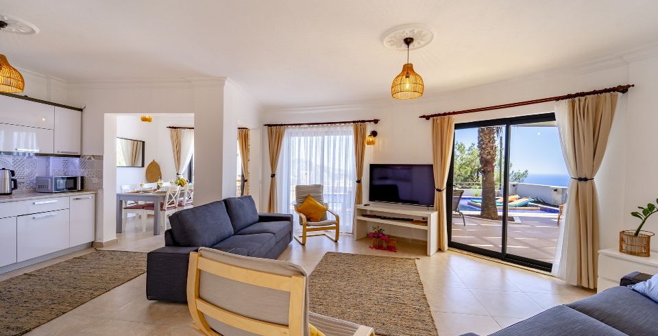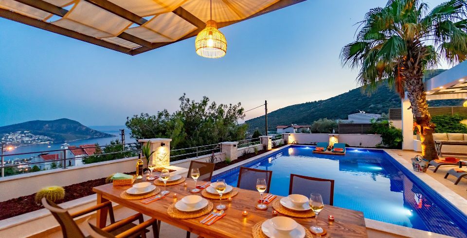 Villamız Kalkan bölgesinde 3 Yatak odalı 6 kişilik kapasiteye sahip deniz manzaralı kiralık villamız kalkan merkeze yakın konumda olup aileler ve arkadaş gurupları için ideal seçeneklerimiz arasında yer almaktadır.