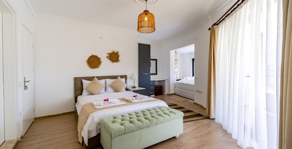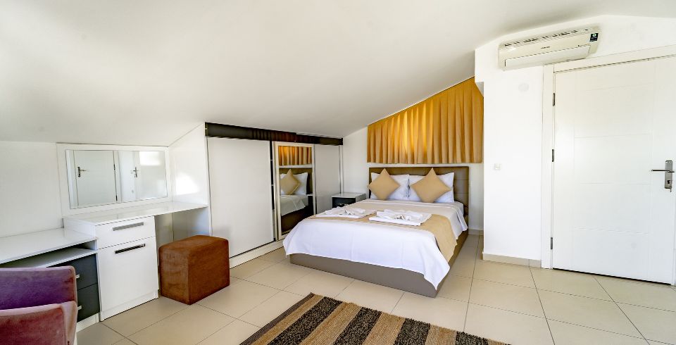 3. Yatak Odası : 1 adet çift kişilik yatak, klima, komodin, elbise dolabı, jakuzili havuz, banyo ve tuvalet bulunmaktadır.