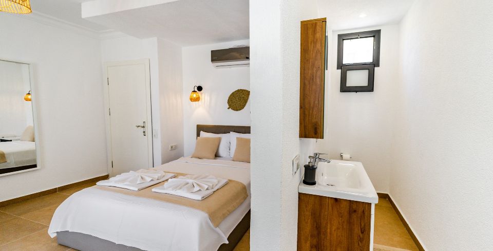 1. Yatak Odası : 1 adet çift kişilik yatak, klima, komodin, elbise dolabı, jakuzili havuz, banyo ve tuvalet bulunmaktadır.