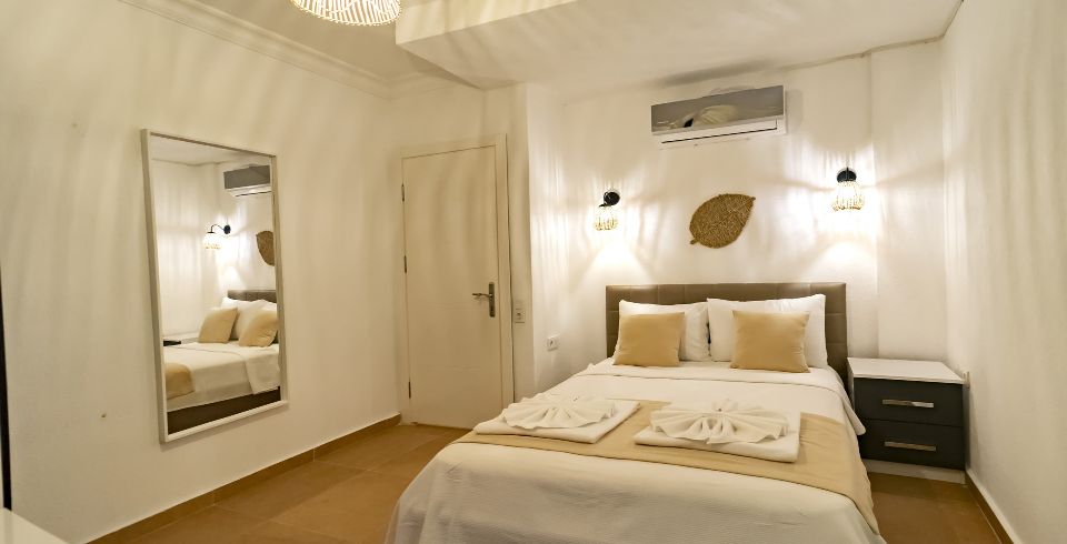 2. Yatak Odası : 1 adet çift kişilik yatak, klima, komodin, elbise dolabı, jakuzili havuz, banyo ve tuvalet bulunmaktadır.