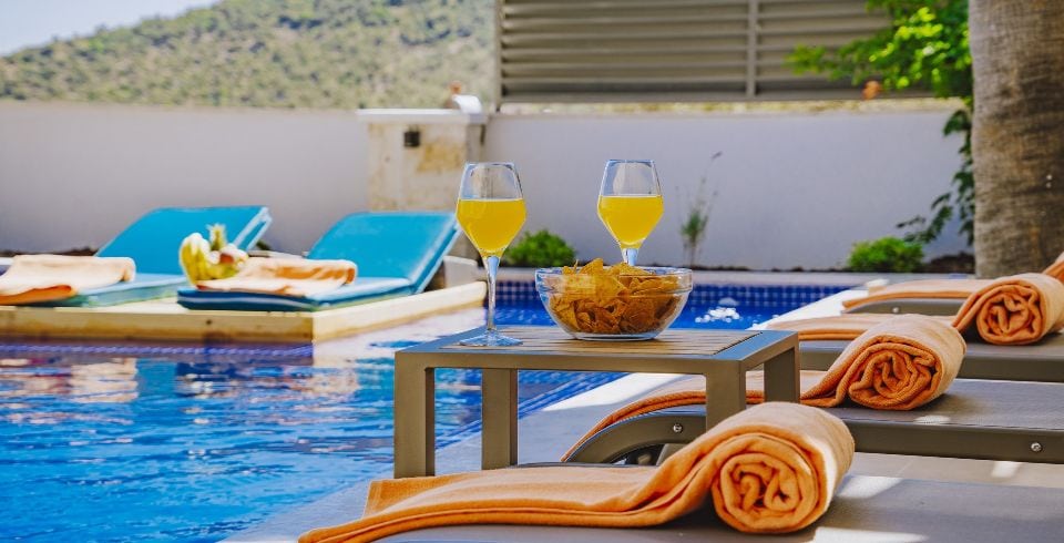 Havuz Bahçe : Bahçe içerisinde özel yüzme havuzu, şezlonglar, güneş şemsiyesi, bahçe yemek masası bulunmaktadır.