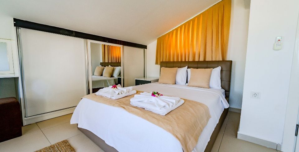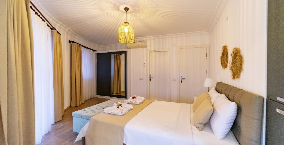 3. Yatak Odası : 1 adet çift kişilik yatak, klima, komodin, elbise dolabı, banyo ve tuvalet bulunmaktadır.