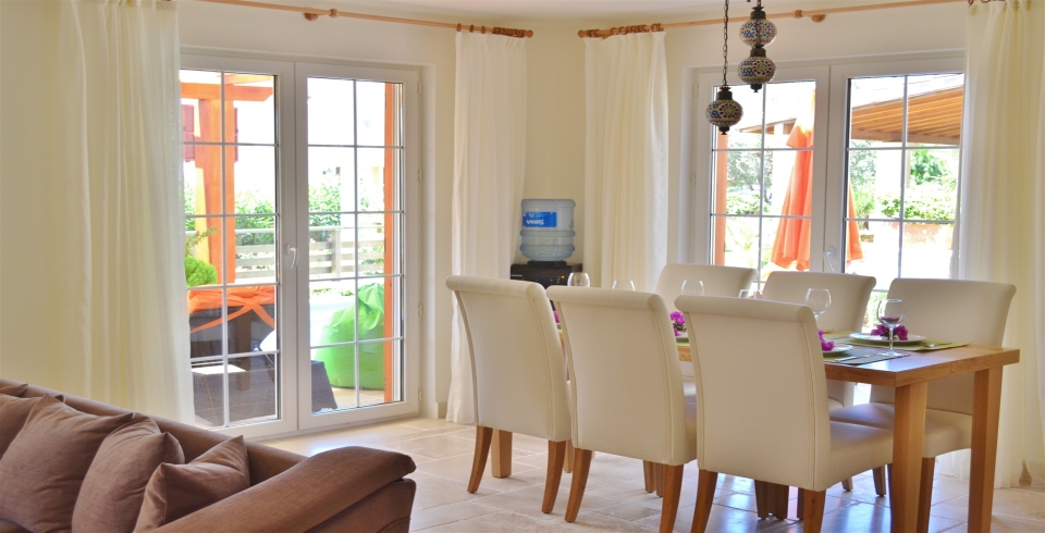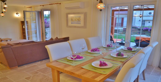 Salon; Salonumuzda konforlu kaliteli lüks oturma gurubu, klima, hd smart tv, uydu alıcısı, sınırsız kablosuz internet mevcuttur. Salonumuzda banyo ve tuvalet bulunmaktadır. Salonumuzdan havuz başına ve bahçemize çıkış vardır.