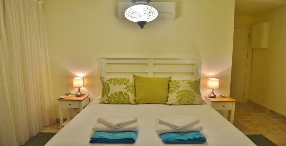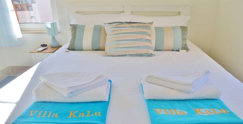 1. Yatak Odası: 1 adet çift kişilik yatak, çelik para kasalı elbise dolabı, saç kurutma makinası, ütü ve ütü masası, klima, banyo ve tuvalet, geniş balkon, doğa ve deniz manzarasına sahiptir.