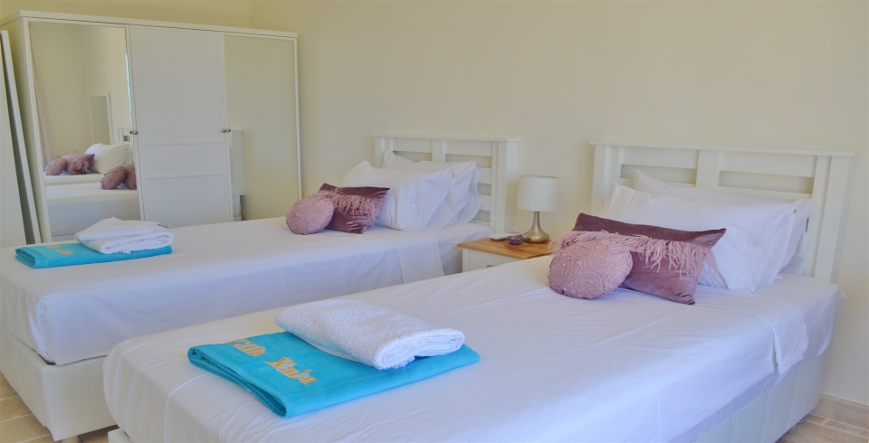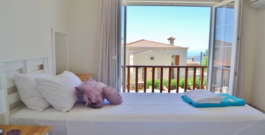 3.Yatak Odası: 2 adet tek kişilik yatak, elbise dolabı, makyaj masası, saç kurutma makinası ve deniz manzarasına sahiptir. Ortak kullanım banyo ve tuvalet bulunmaktadır.