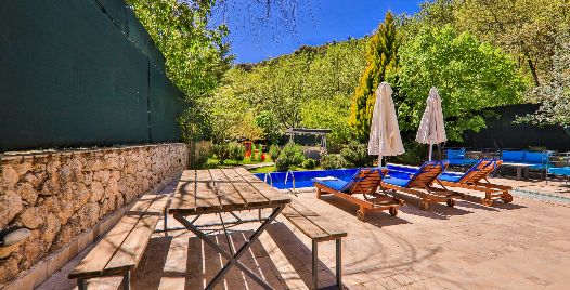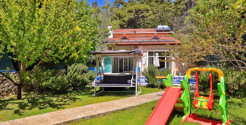 Villa Kaputaş 5 Kalkan Sarıbelen bölgesinde bulunuyor olup taş döşemesiyle doğa ile iç içedir. 6 Kişilik konaklama kapasitesiyle 3 yatak odası mevcuttur. Tüm iç mimarisi taş döşeme olup bu villamız muhafazakâr villa olarak da hizmet vermektedir. Özel korunaklı havuz bulunan villamızda ailenizle ve çocuklarınızla eğlenebilir, harika anılar biriktirebilirsiniz villamızın havuzu geniş olup içerisinde çocuk havuzu da mevcuttur. Villamızın bahçesi geniş olup içerisinde, çocuk parkı, masa tenisi, futbol kalesi ve salıncak bulunuyor. İç ve dış dekorasyonuyla taş tasarım olan villamız misafirlerine tamamen farklı bir tasarım ve tatil imkânı sunarak tatil keyfini çıkartarak, ailenizle beraber vakit geçirebilirsiniz. Villa içerisinde ihtiyacınız eşyalar mevcut olup birde ısıtmalı havuz bulunmaktadır. Doğa içerisinde bulunan villa, taş dekorasyonu ile uyum sağlayacak villa içerisinde bulunan muhafazakâr havuz ile beraber rahatça havuzun tadını çıkartabileceksiniz.