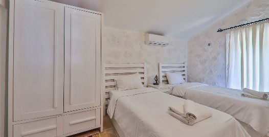3. Yatak Odası: 2 adet tek kişilik yatak, elbise dolabı, makyaj masası, komodin ve ortak kullanım banyo ve lavabo bulunmaktadır.