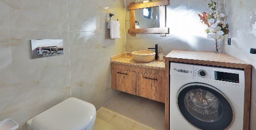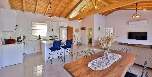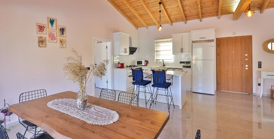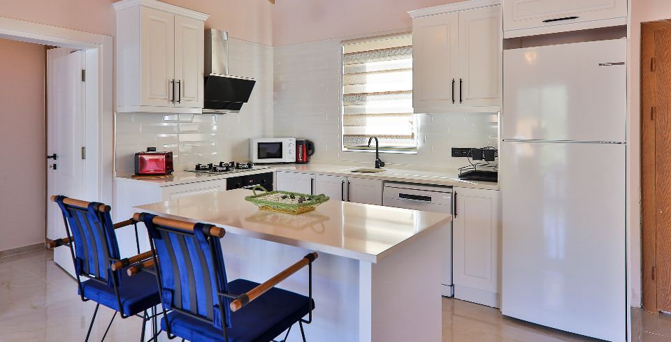 Mutfak : Villamızın geniş Amerikan mutfağı ile sizlere kendi evinizin mutfağı gibi hissettirecek. Ayrıca mutfakta klima, bulaşık makinası, buzdolabı, çamaşır makinası, mikrodalga fırın, tost makinası, ekmek kızartma, su ısıtıcısı, fırın, 4`lü ocak seti ve 4 kişilik geniş yemek masası ile tava tencere vb. mutfak araç gereçlerini kullanma fırsatını sizlere sunuyoruz.