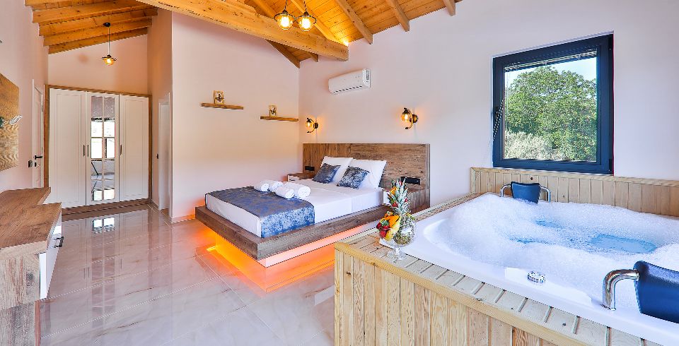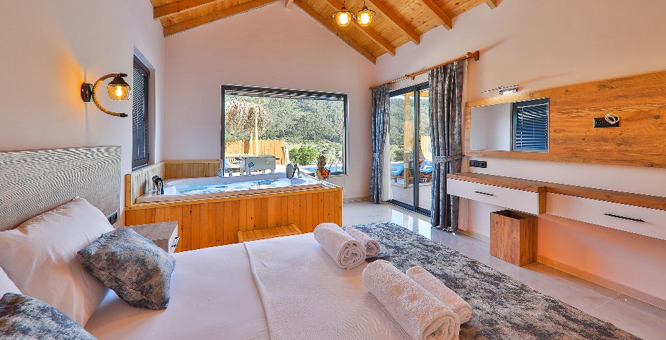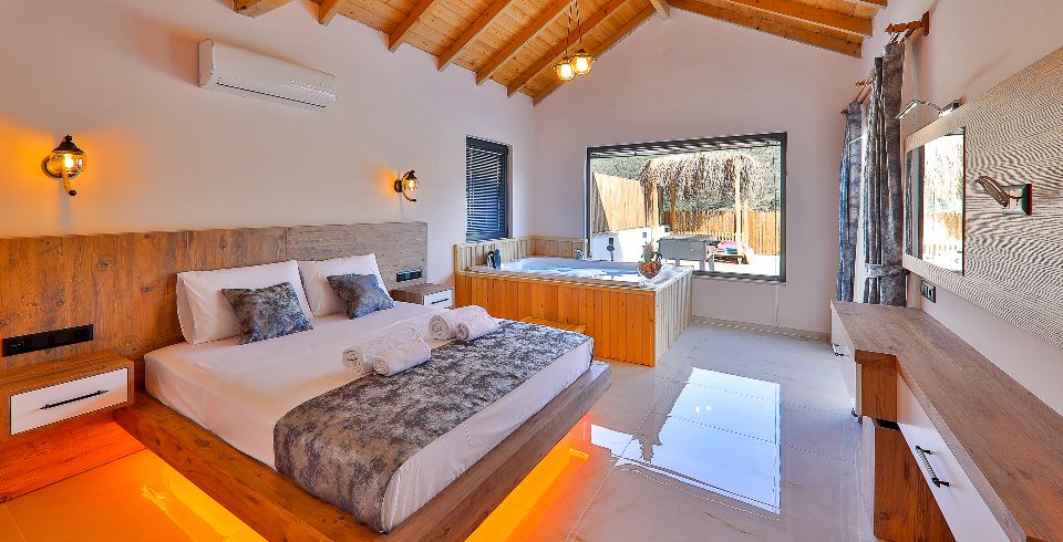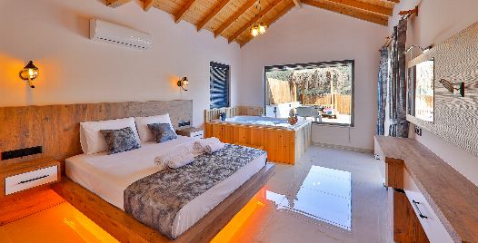 1. Yatak Odası : 1 adet çift kişilik yatak, oturma grubu, klima, jakuzi, komodin, elbise dolabı, makyaj masası, banyo ve lavabo bulunmaktadır.