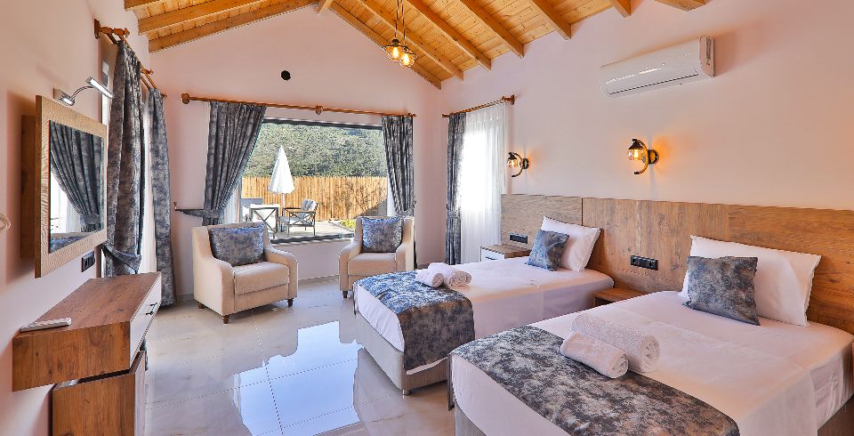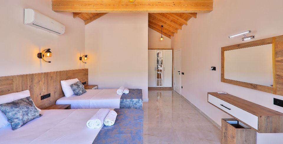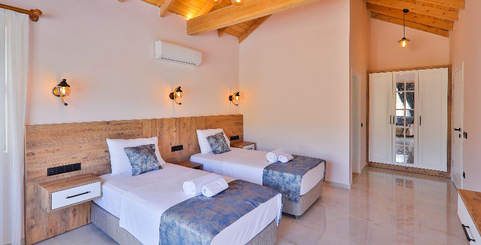 2. Yatak Odası : 2 adet tek kişilik yatak, klima, elbise dolabı, makyaj masası, komodin, banyo ve lavabo bulunmaktadır.