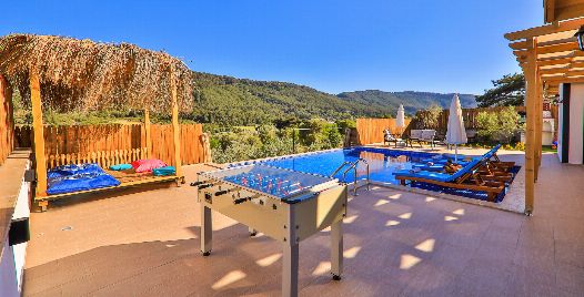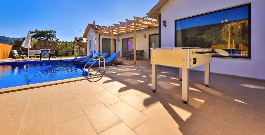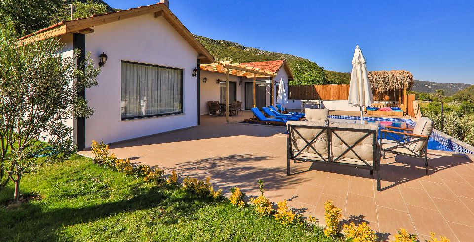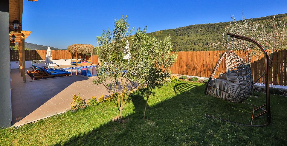 Bahçe : Villamızın bahçesinde özel yüzme havuzu, güneşlenmeniz için 4 adet şezlong, güneşlenme terası, 6 kişilik masa, oturma grubu, mangal keyfiniz için barbekü, güneş şemsiyesi bulunmaktadır.