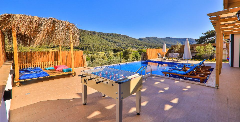 Havuz : Villamızın havuzu ise etrafı dışarıdan görülmeyecek şekilde korunaklı olup sizlere huzurlu ve keyifli havuz deneyimi sunmaktadır. Size özel muhafazakâr yüzme havuzu, şezlong keyfi ve şemsiye ile yazın en güzel günlerinde sizleri bekliyor.