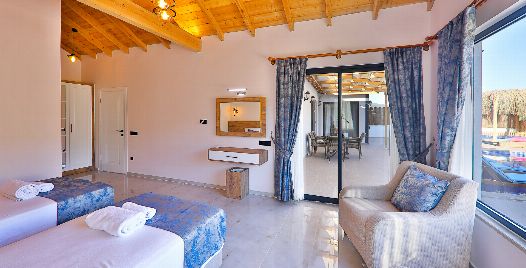 Salon : Villa Karaağınç’ın salonunda sizi şık bir oturma grubu ile klima, televizyon, internet, uydu, koltuk, sehpa ile ferah bir salon bekliyor olacaktır. Havuz terasına çıkış yapılmaktadır.