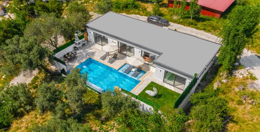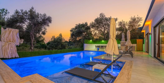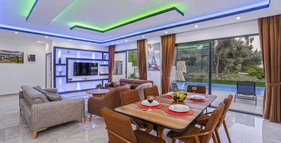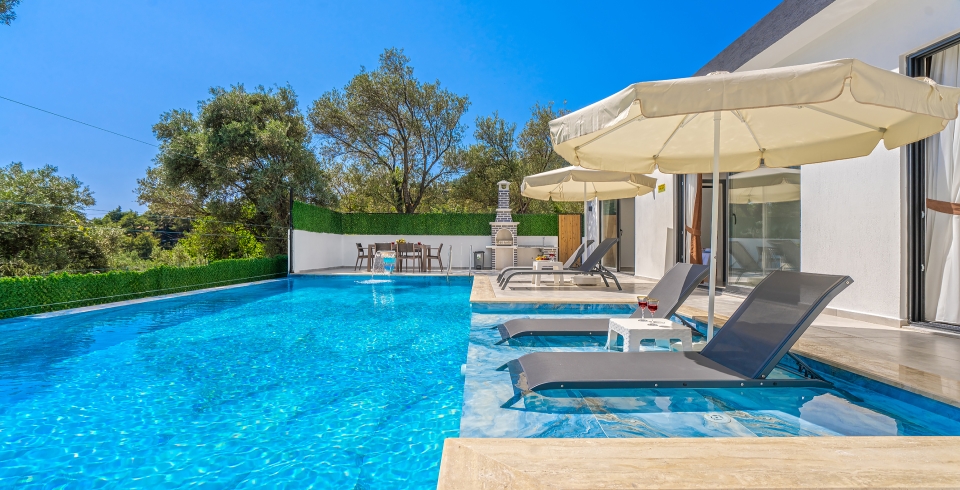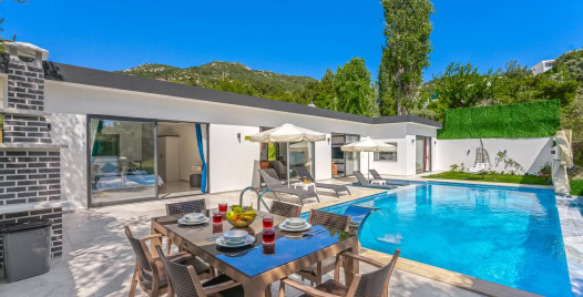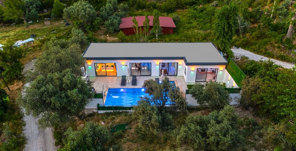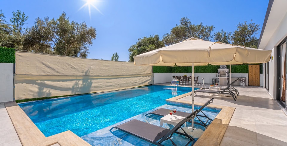 Havuz ve Bahçe : Özel yüzme havuzu bulunan villamızın havuz terasında şemsiye, şezlong, barbekü, pergola, oturma alanı, yemek masası ve sandalyeler bulunmaktadır.