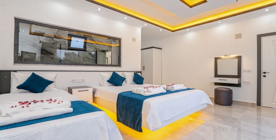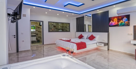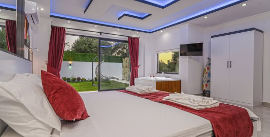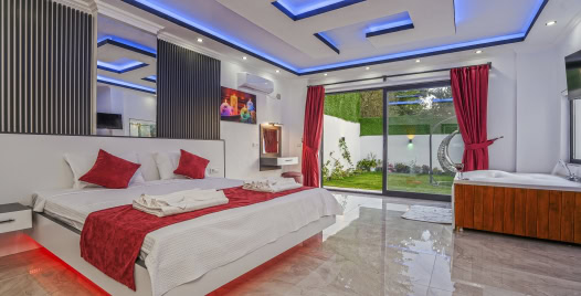 Korunaklı havuz terası sayesinde muhafazakâr aileler ve mahremiyetine önem veren balayı çiftleri tarafından sıklıkla tercih edilmektedir. Villamızın ebeveyn yatak odasında jakuzi bulunmakta olup, konforlu ve keyifli bir tatil deneyimi sunmak üzere tüm detaylar düşünülmüştür.