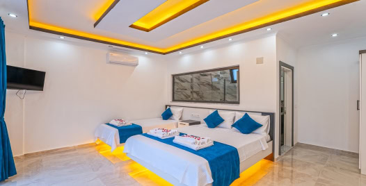 2. Yatak Odası : 1 adet çift kişilik yatak,1 adet tek kişilik yatak, klima, komodin, makyaj masası, elbise dolabı ve banyo tuvalet bulunmaktadır.