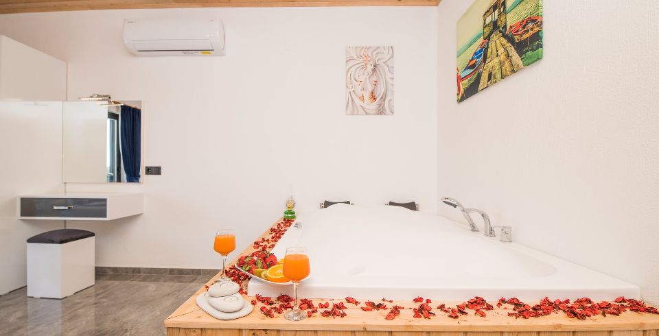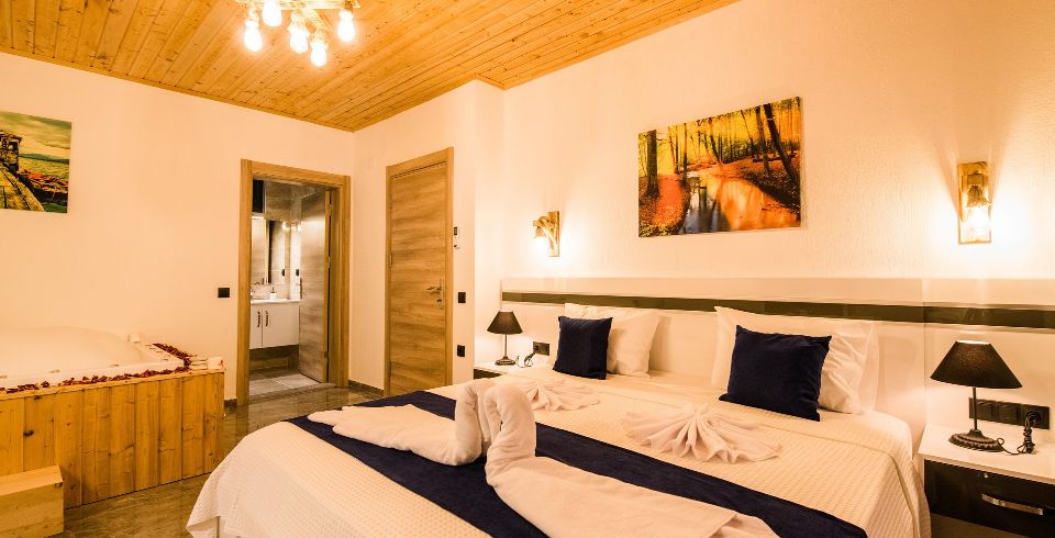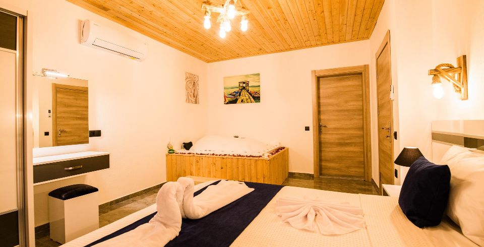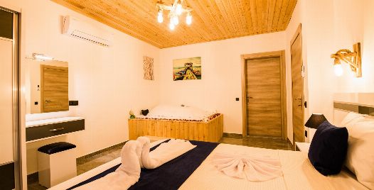 1: Yatak Odası: Çift kişilik yatak, klima, jakuzi, komodin, TV, elbise dolabı, makyaj masası, banyo ve tuvalet bulunmaktadır.