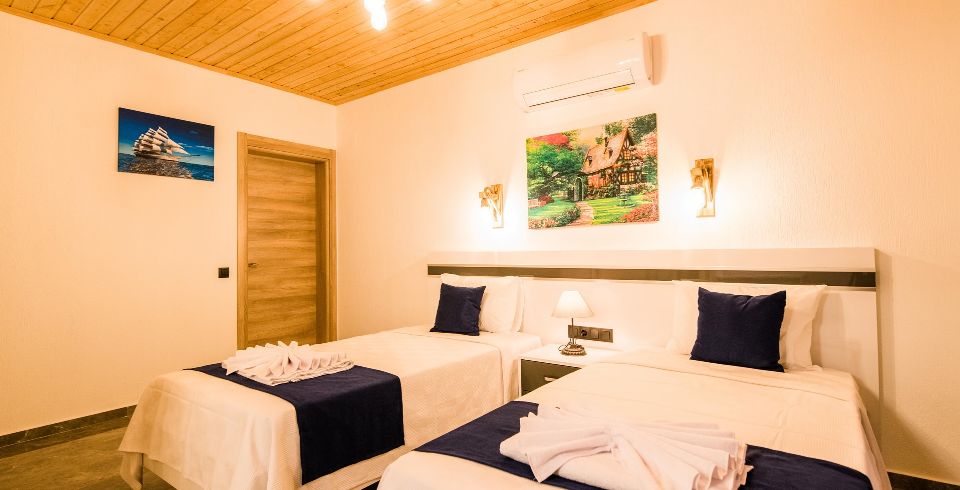 2: Yatak Odası: 2 adet tek kişilik yatak, klima, komodin, elbise dolabı, makyaj masası banyo ve tuvalet bulunmaktadır.