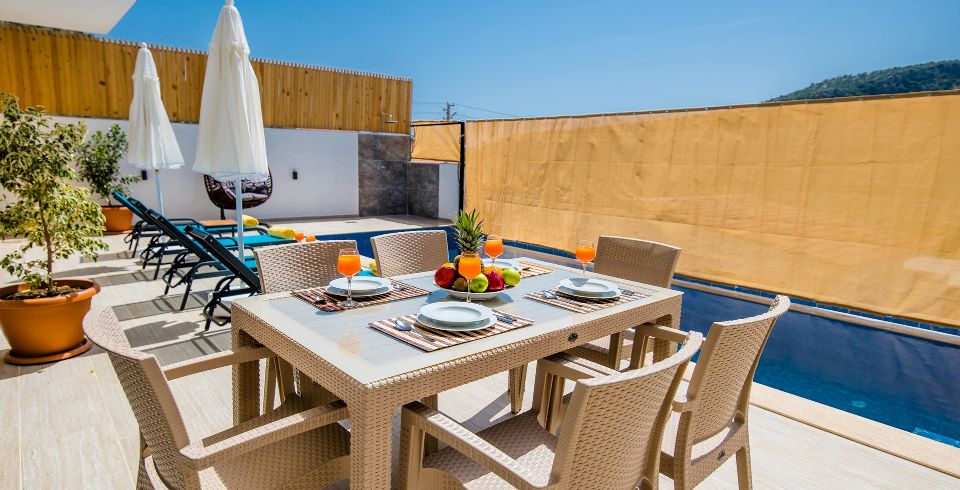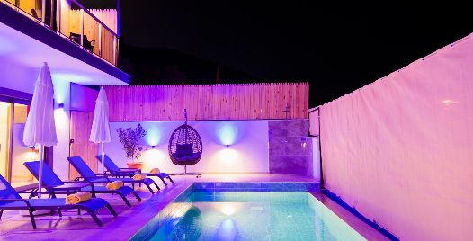 Villa Karadağ Kalkan Ulugöl bölgesinde 2 yatak odalı 4 kişilik konaklama kapasitesine sahiptir. Villamız şık mobilya ve aksesuarlar döşenmiş olup Çekirdek aileler arkadaş gurupları ve balayı çiftleri için oldukça uygun olan modern villamız doğa manzarasına sahip havuz terasında arkadaşlarınızla veya eşinizle sesiz sakin ortamda güzel anılar yaşayabilir. Eğlenceli vakit geçirebilirsiniz. Villamızda çift jakuzi salıncak bulunmaktadır.