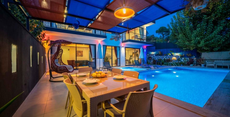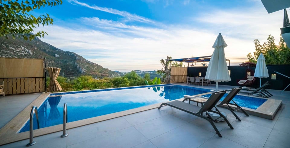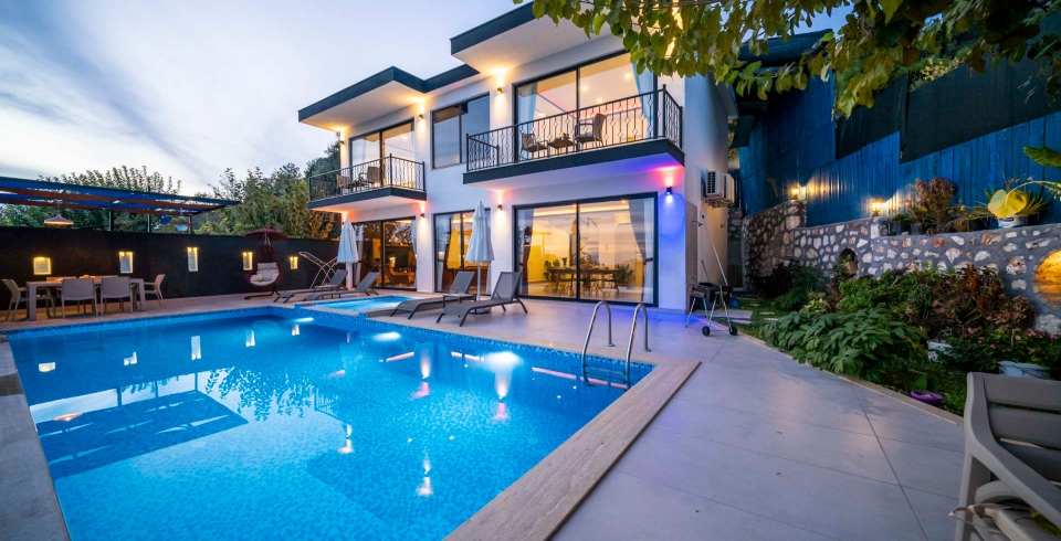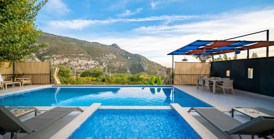 Villa Karadayi Duo Akdeniz'in en popüler bölgelerinde olan Kalkan'in Islamlar mevkiinde bulunmaktadır. Doga içerisinde keyifli bir tatil yapmak isteyen misafirlerimiz için 2 yatak odali 4 kisilik jakuzili olarak dizayn edilmistir. Muhtesem deniz ve doga manzarasina sahip üzüm bahçeleri ve çam agaçlari içerisinde konumlanmis, 2 katli romantik balayi villamızdir.