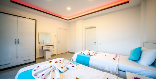 2. Yatak Odasi: 2 adet tek kisilik yatak, makyaj masasi, elbise dolabi, klima, banyo, tuvalet ve balkon bulunmaktadir.