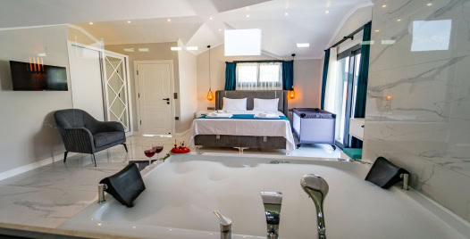 1.Yatak Odası: 1 adet çift kişilik yatak, komodin, Jakuzi, klima, elbise dolabı, tuvalet ve banyo bulunmaktadır.