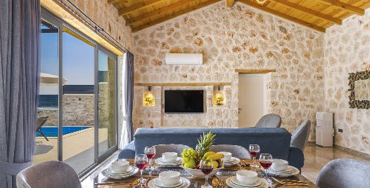 Salon: Villa salonunda konforlu oturma grubu, klima, TV, internet, uydu alıcı, yemek masası, sehpa bulunmaktadır.