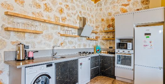 Mutfak: Villamızın mutfağında buzdolabı bulaşık makinası, çamaşır makinası, 4'lü ocak, ketıl, mikro dalga fırın, filtre kahve makinası 4 kişilik yemek takımı bulunmaktadır.