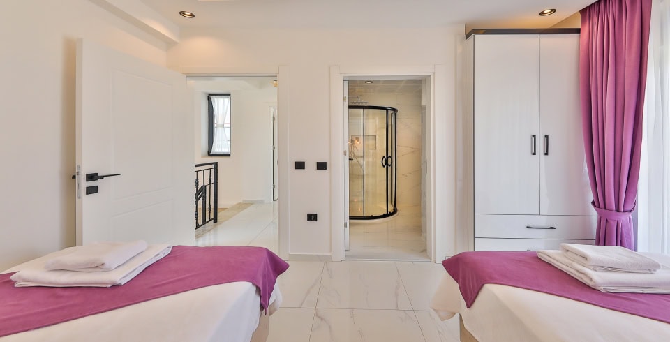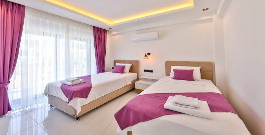 2. Yatak Odası : 2 tek kişilik yatak, elbise dolabı, komodin,balkon,klima, banyo bulunmaktadır.