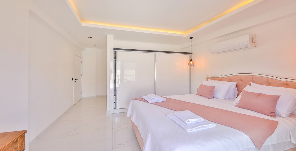 1. Yatak Odası : 1 çift kişilik yatak, elbise dolabı, komodin, klima, banyo ve balkon bulunmaktadır.