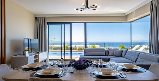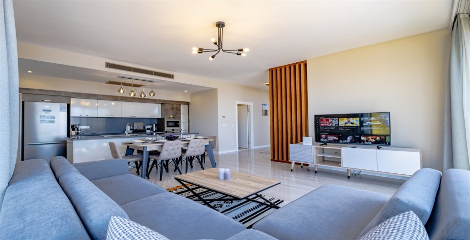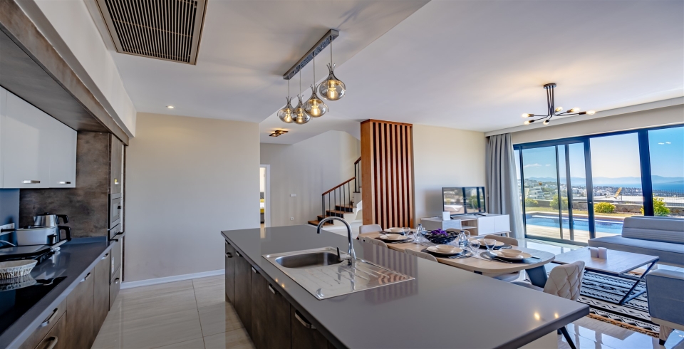 Salon : Salon içerisinde oturma grubu, TV, klima ve sehpa bulunmaktadır. Havuz terasına çıkış sağlanabilir.